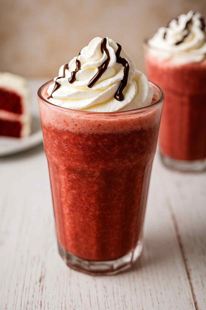 - Pour the red velvet Frappuccino into a large glass and serve immediately.